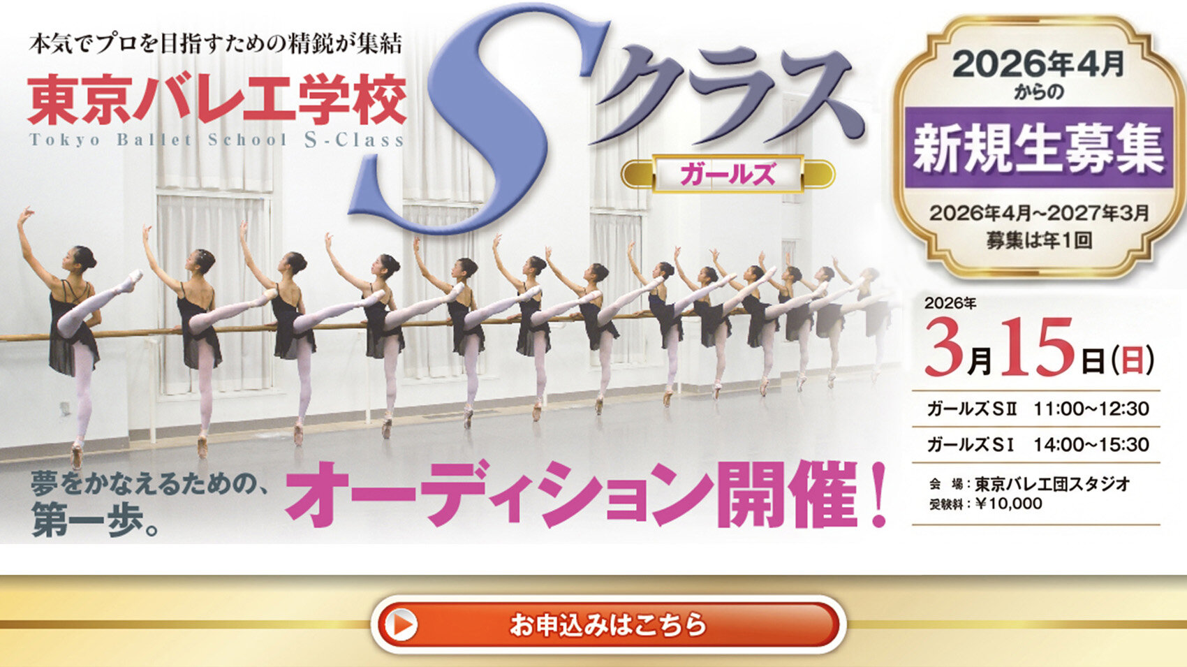| 2026年01月26日(月) | ◆「2026年 S クラス新規生募集」に伴うオーディションにつきまして |