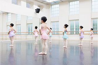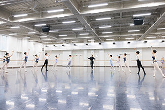 東京バレエ学校のレッスンで使用する本館Aスタジオ(564㎡)は、東京文化会館の舞台より広く、世界でも類をみない規模を誇ります。東京バレエ団のリハーサルでも使用しています。新館Cスタジオ、Dスタジオはそれぞれ面積が260㎡、190㎡と都内のバレエスタジオとしては有数の広さを誇り、天井が5.5mと高く、のびのびレッスンが受けられます。